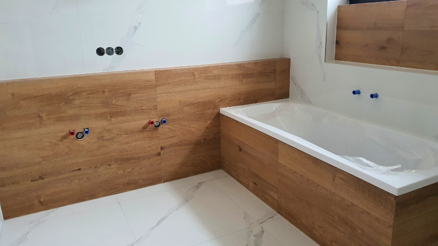 | Interiér | Koupelny: bílý mramor + dekor dřeva Možnost výběru podlah a vnitřních dveří |