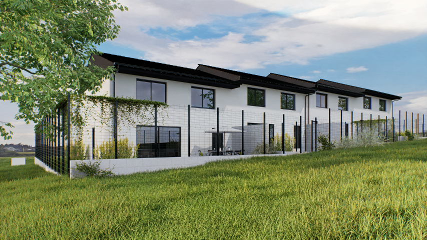Čtyři pasivní rodinné domy o dispozici 5+kk s užitnou plochou 131 m² nabízejí vše, co moderní rodina potřebuje – prostorný obývací pokoj s kuchyní, soukromou zahradu s terasou a minimálně dvě parkovací stání přímo u domu.